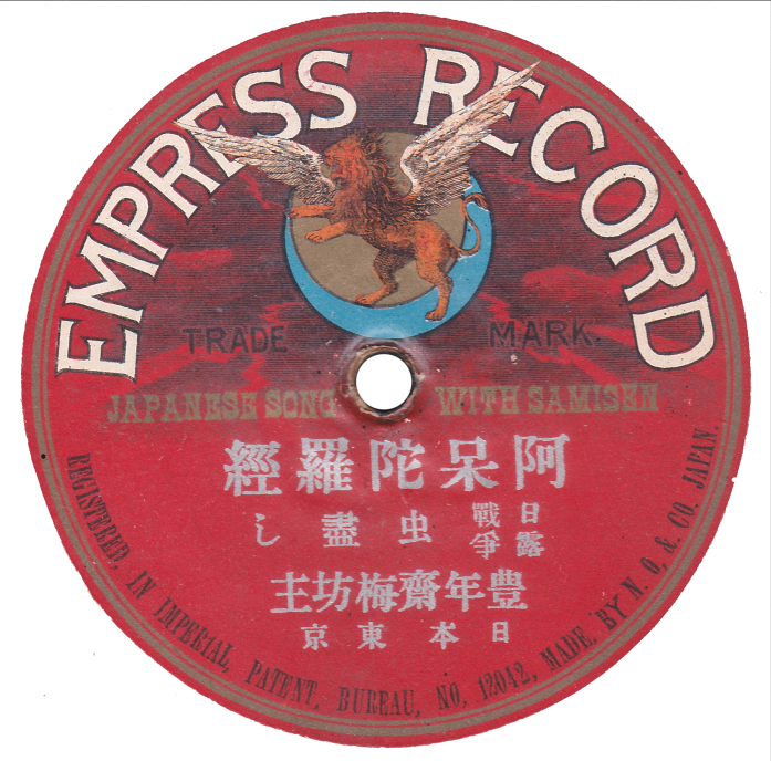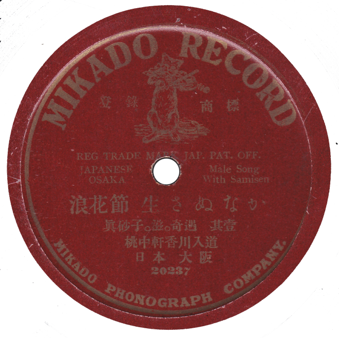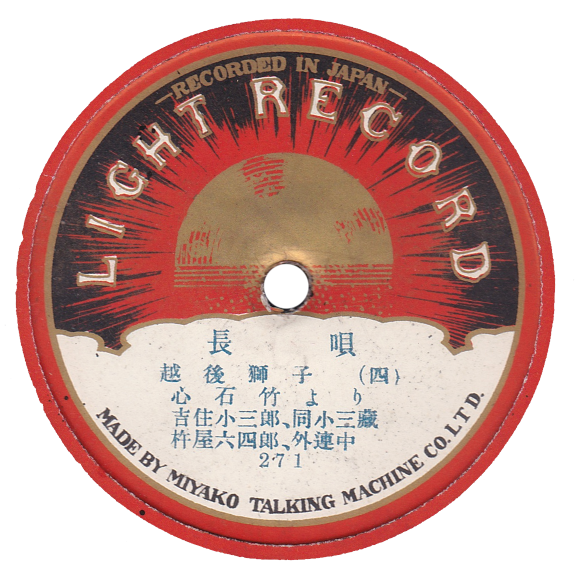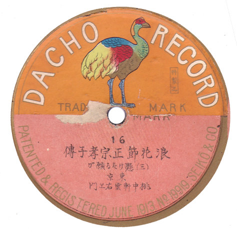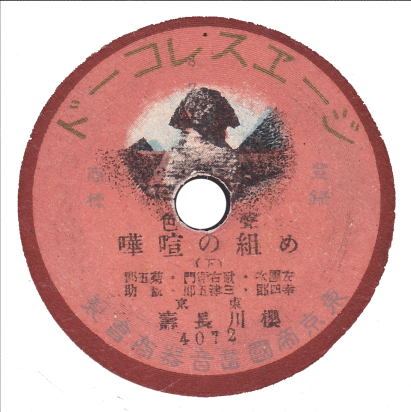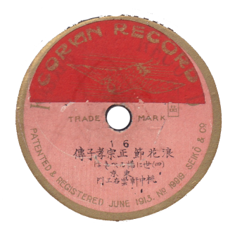 BEKA RECORD(独逸ベカレコード)が1906(明治39)年春に東京などで訳130面分を録音。一年後に一枚三~四円にて販売された。